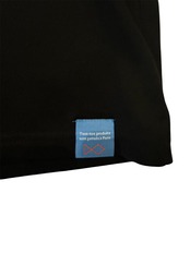手書き文字プリントを胸に用いられ、程よい厚みがありつつも柔らかい上質な生地感、裾にはブルータグネームにが小さな魚の刺繍と文字が入っています。男女兼用のボックスシルエット。