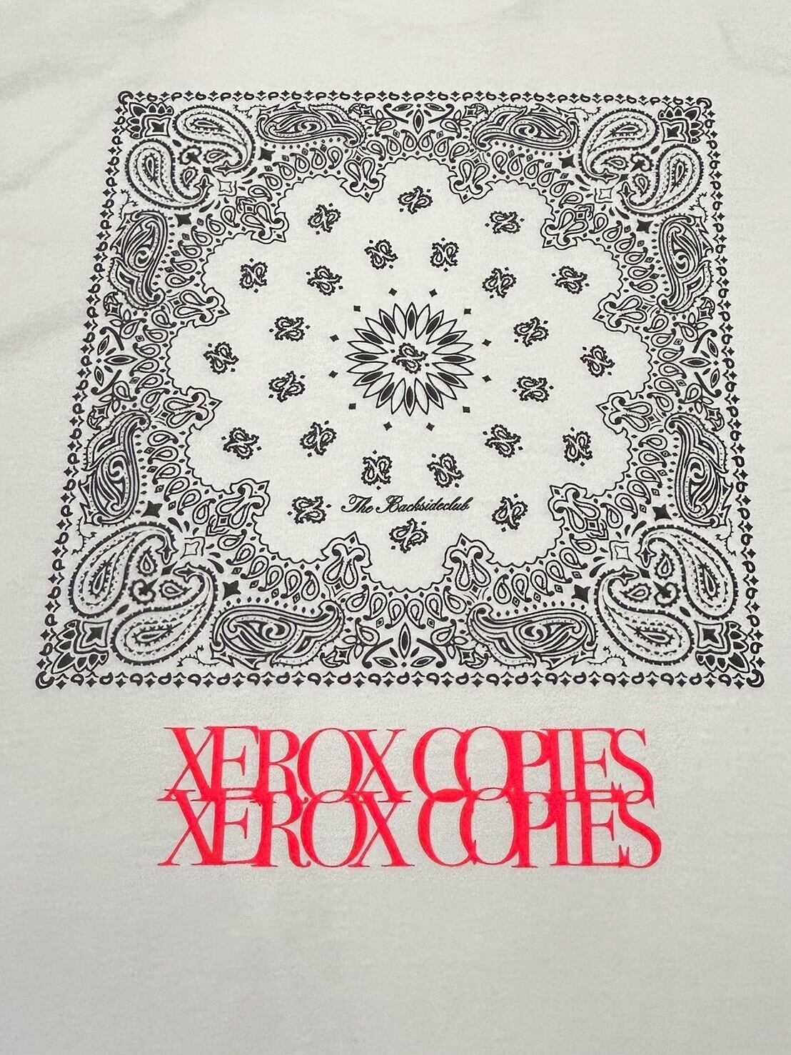 背面には、ペイズリー柄のボックスロゴと「XEROX COPIES」の文字がデザインされています。