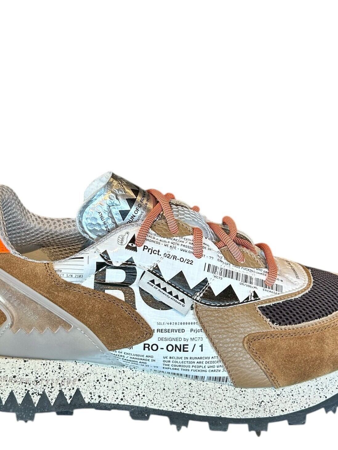 ランオブの代表モデル『RO-1』。レザー、スエード、メタルメッシュ、ラバーなどの異素材の組み合わせた素材使いが秀逸です。