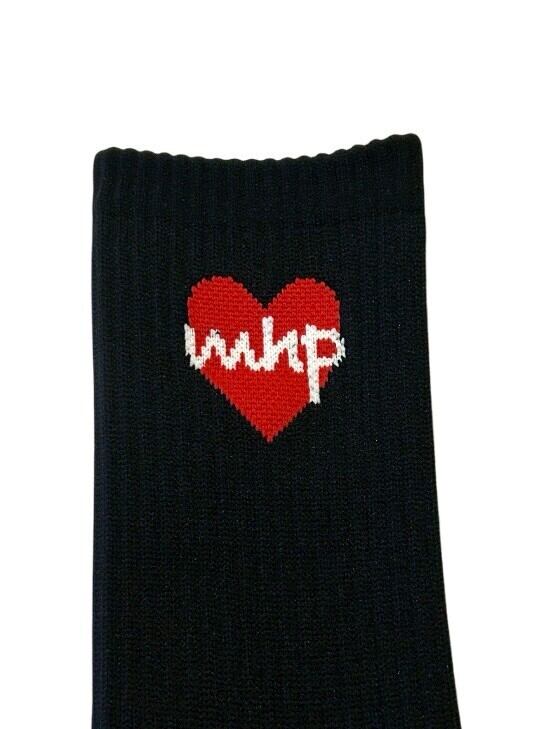 お馴染みのmhpロゴとハートロゴが特徴的な可愛らしいソックス。