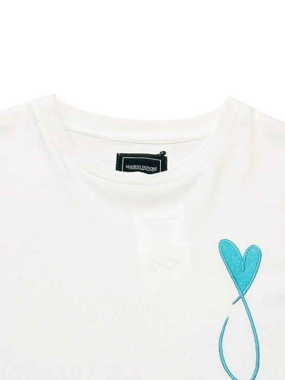「ハートフィッシュ」とよばれるブランドアイコンの刺繍が目を引くロングTシャツ。