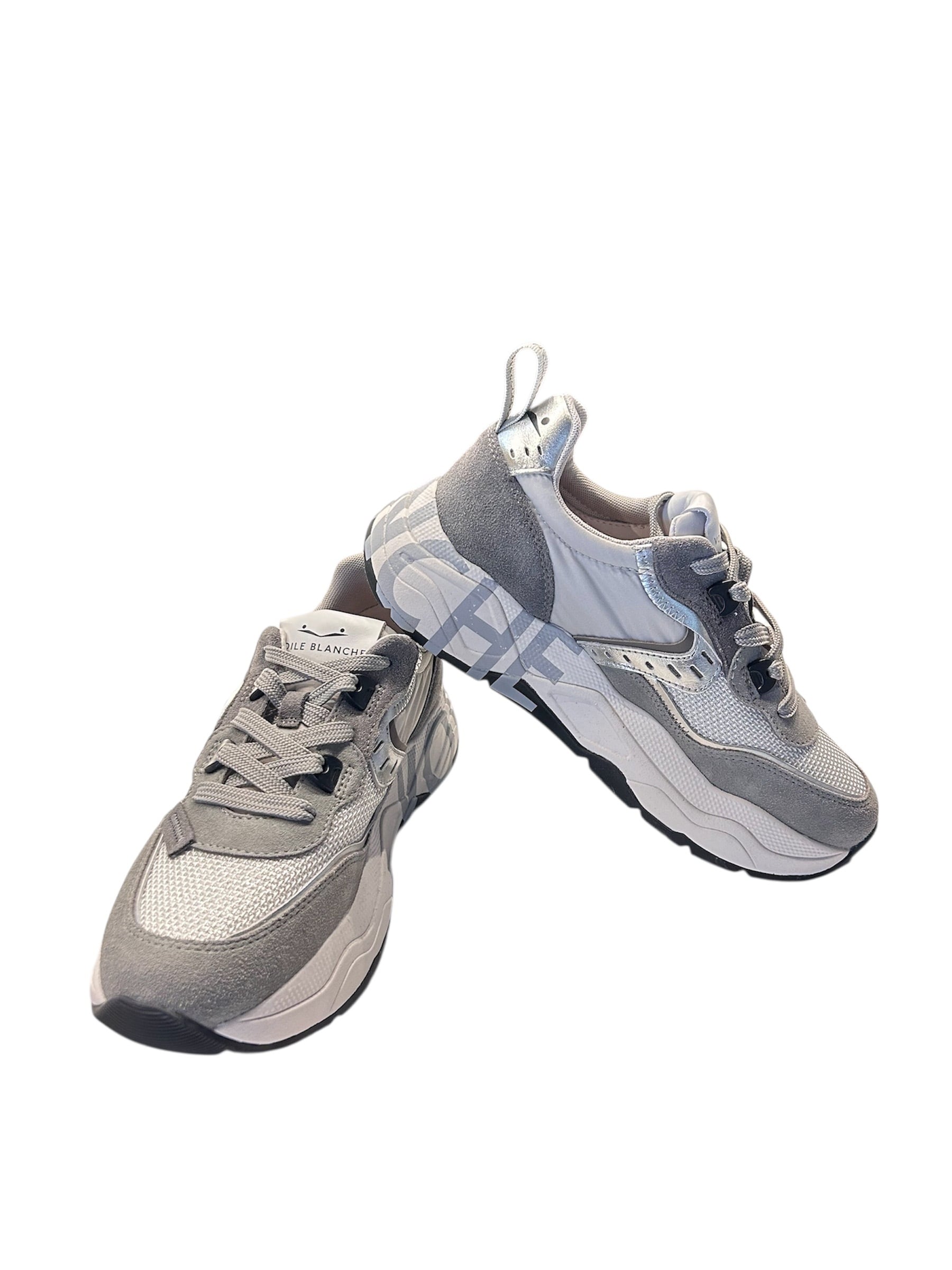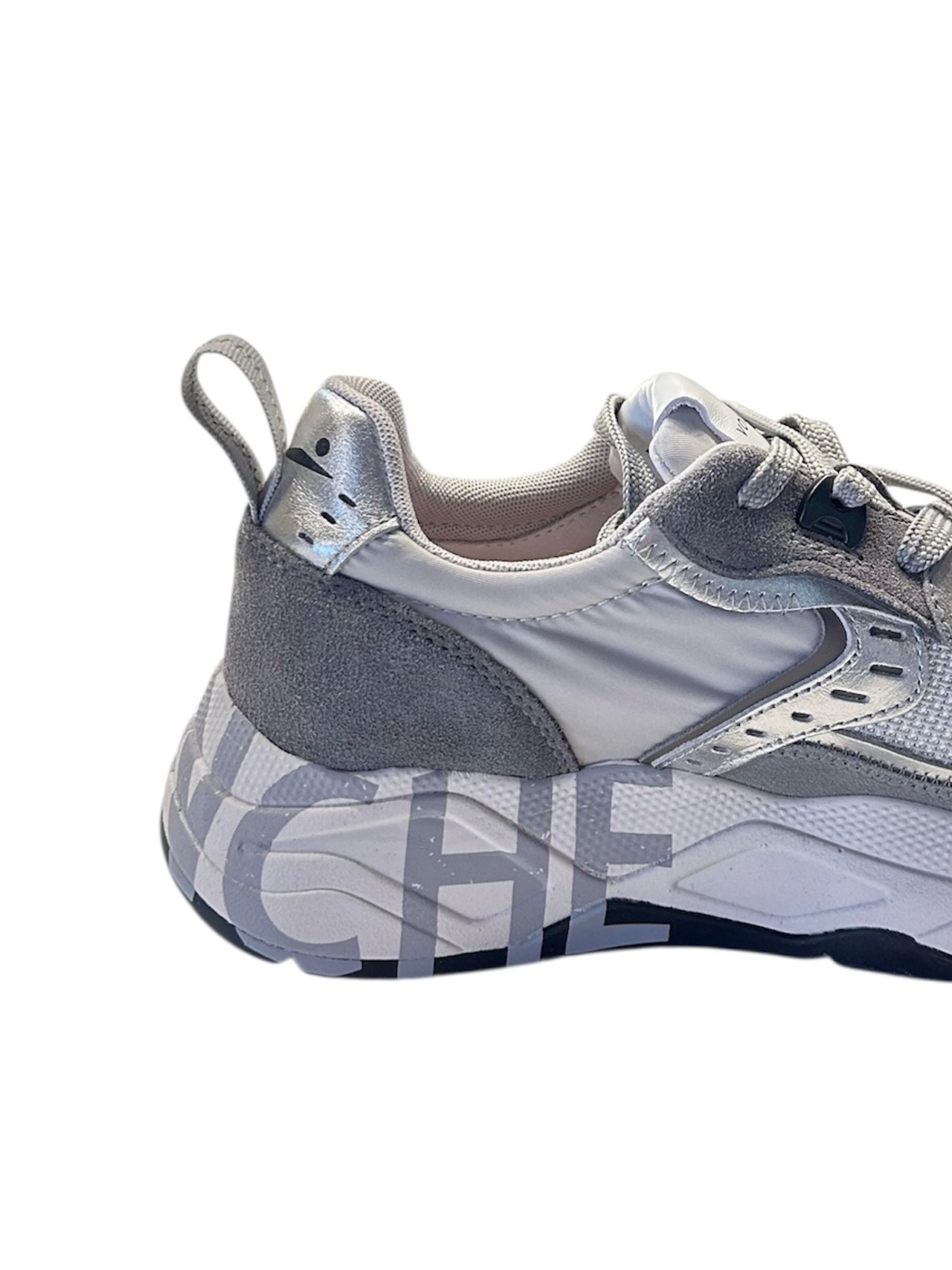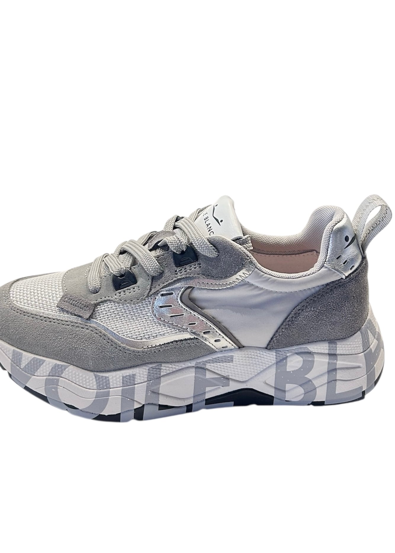 VOILE BLANCHEの中で、素材をイタリアン産に拘り、スポーツスニーカーに使用するパーツや素材をデザインに活かしたのが特徴的なCLUBシリーズ。テクニカルファブリックのアッパーは、イタリアンカーフレザー素材と高密度ナイロンを採用。プラスチック製のアイレットとレースはトレッキングシューズから着想を得ており、スエードのヒールカウンターには立体的なロゴが施されています。外縁にスクリーンプリントを施した、超軽量EVAソールが履き心地を更にアップ。