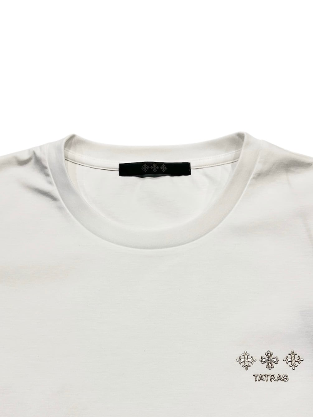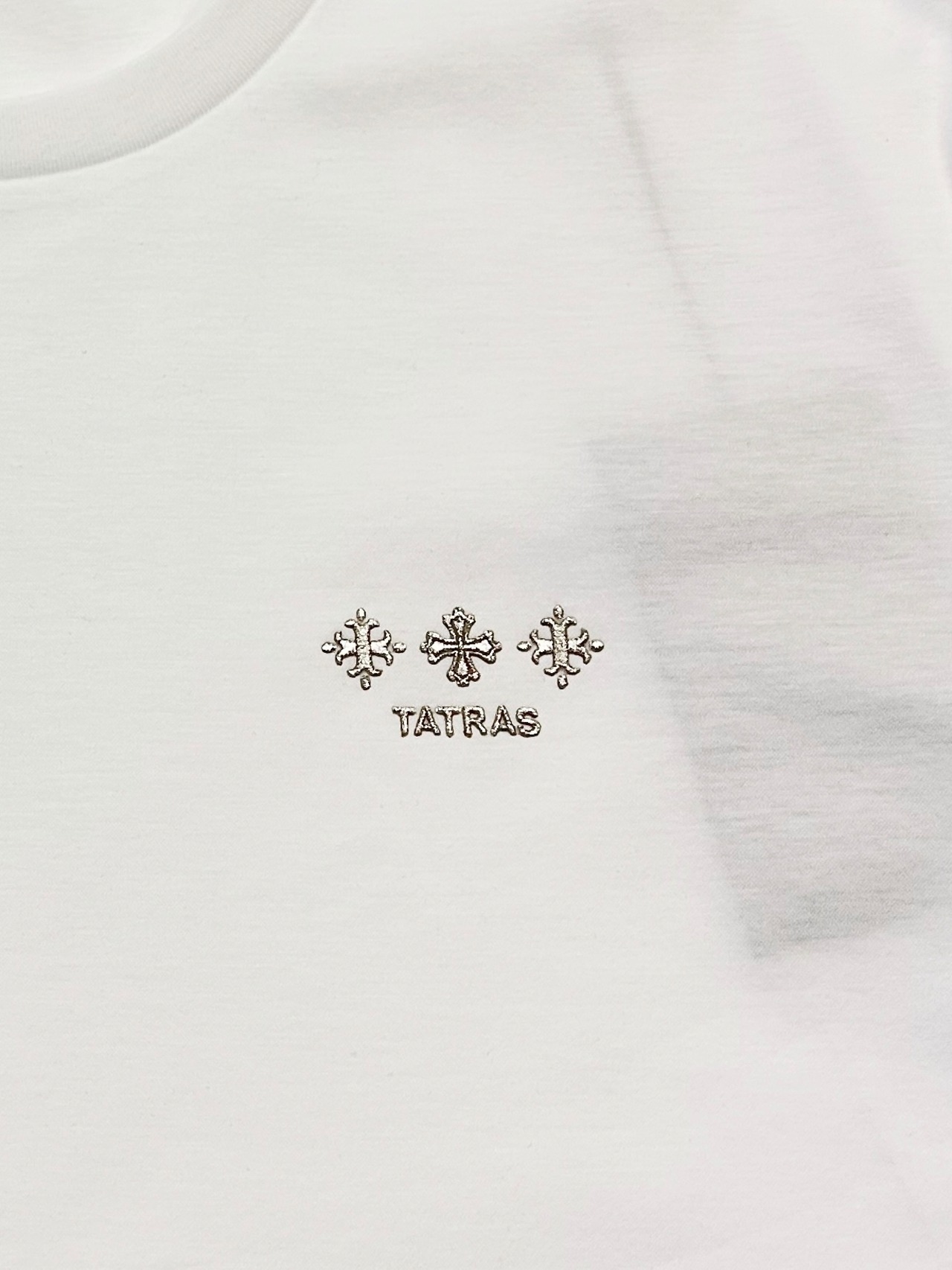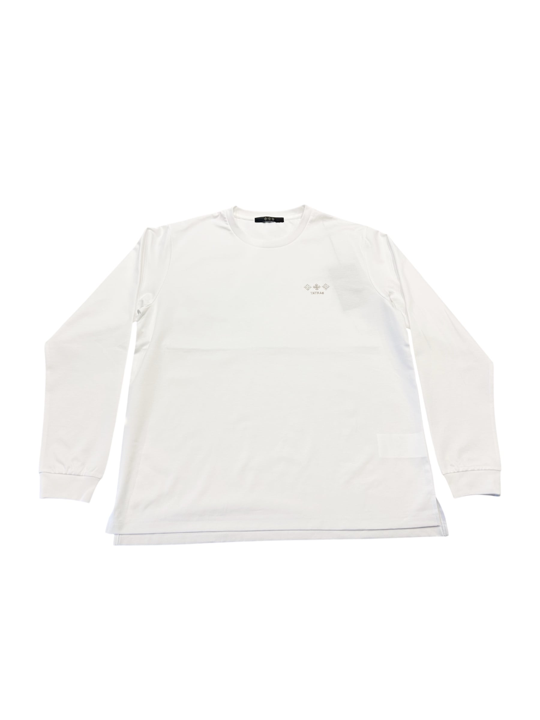 胸元には控えめなサイズ、背中には大胆なサイズのTATRASロゴを配置して、印象的に仕上げたロングスリーブTシャツ。