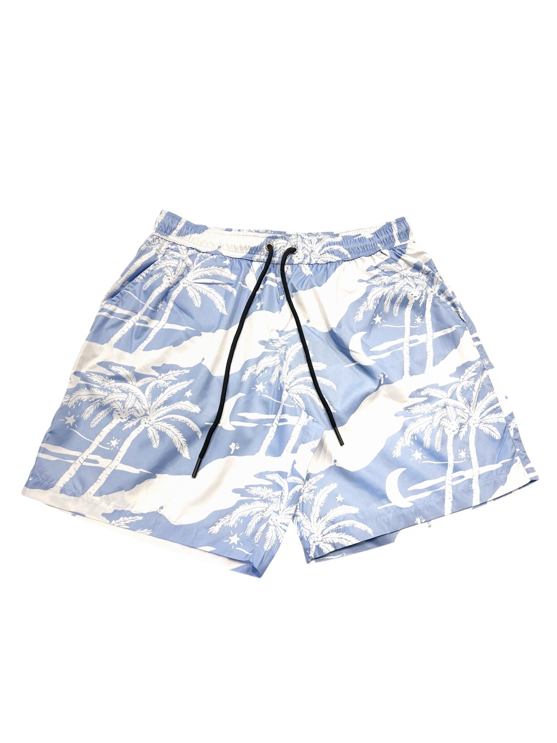 全面ヤードプリント(総柄プリント)が施されており、ヤシの木や月、星が描かれています。
