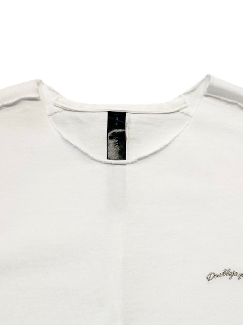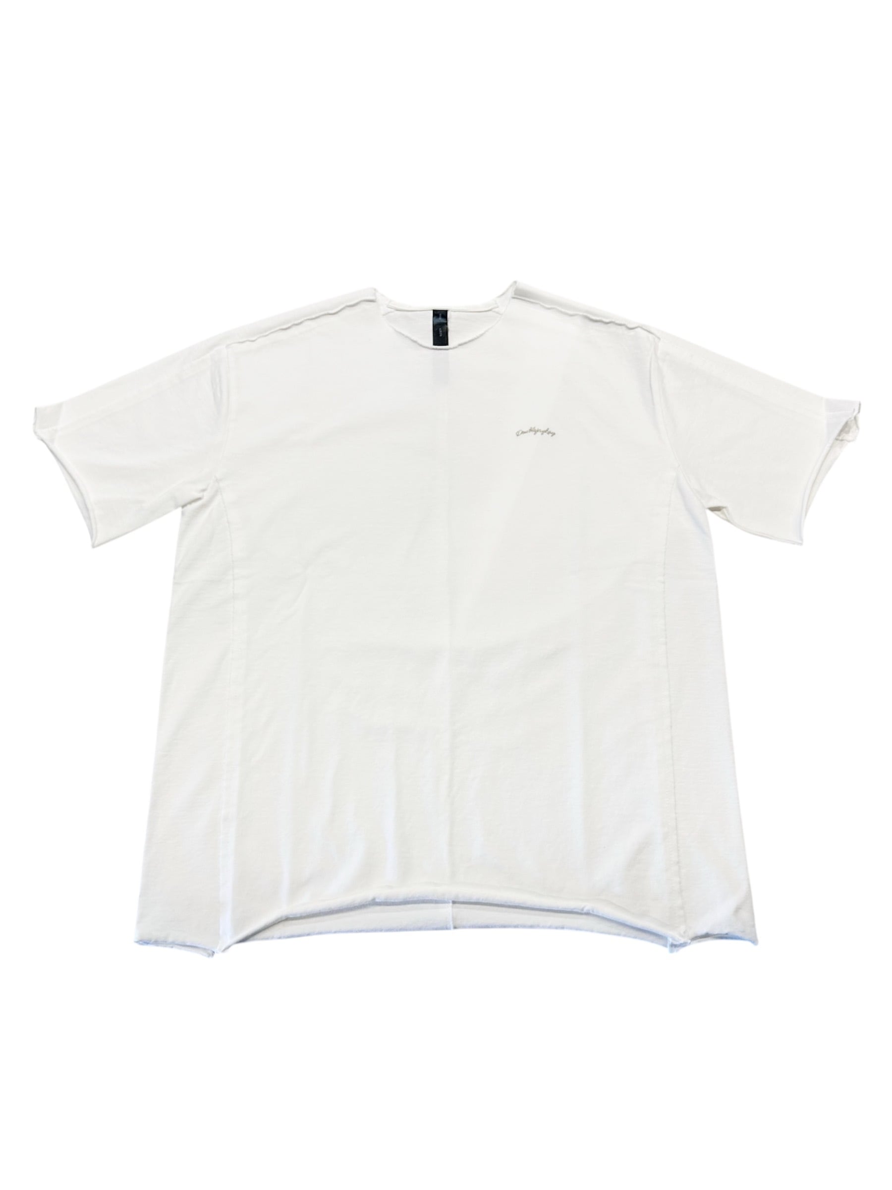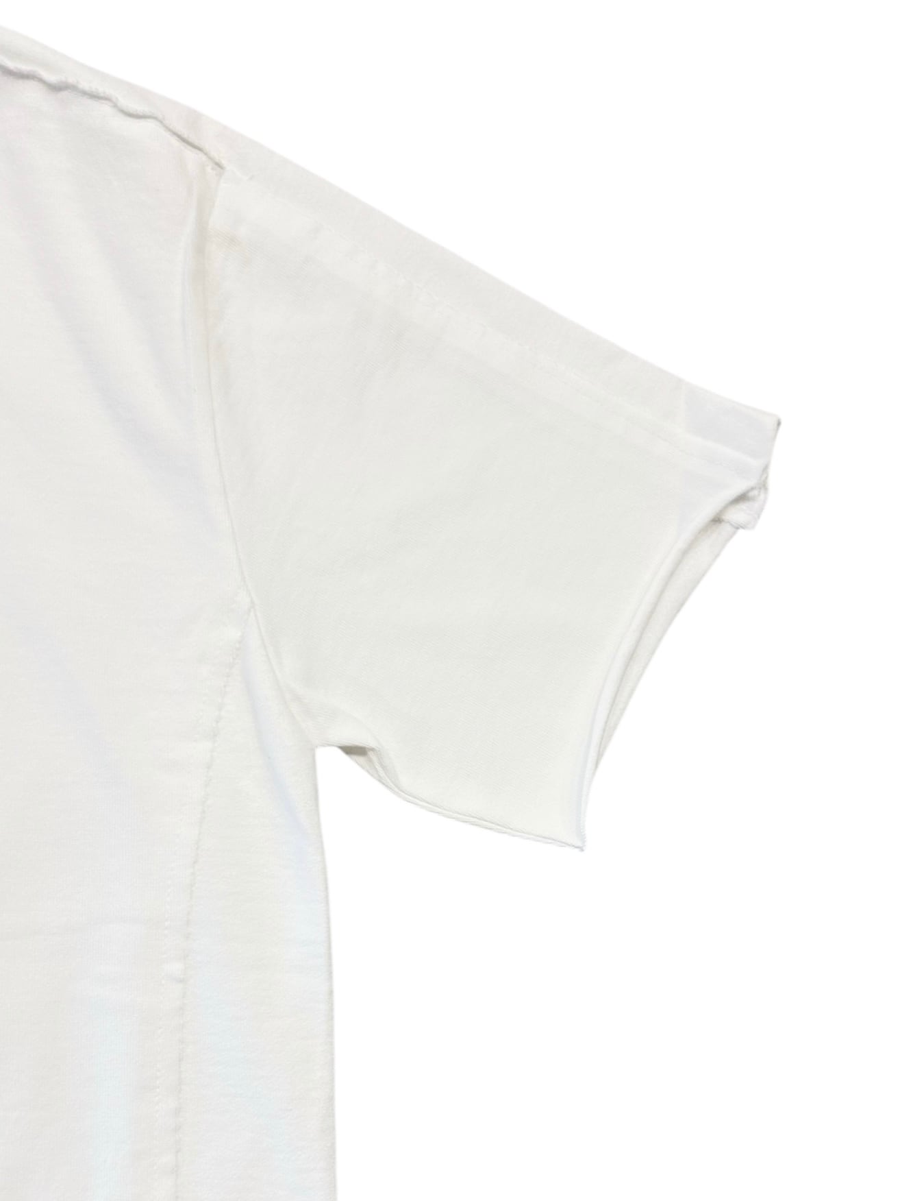 随所の断ち切りで粗野感を演出したショートスリーブカットソー。