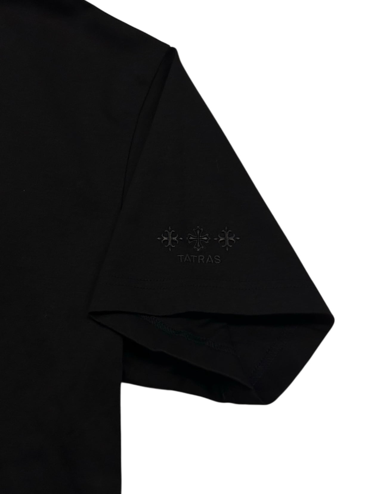 フロントのTATRASロゴが印象的なTシャツ。