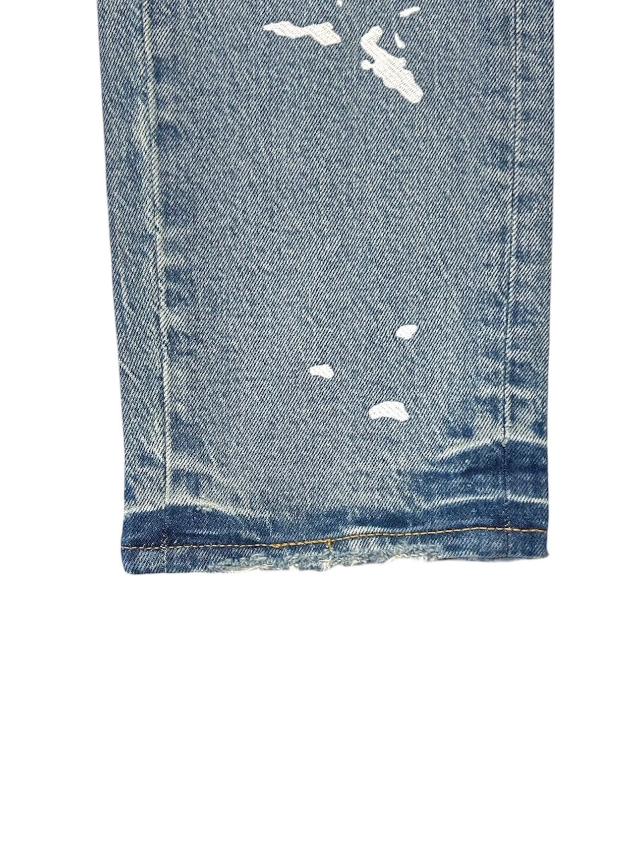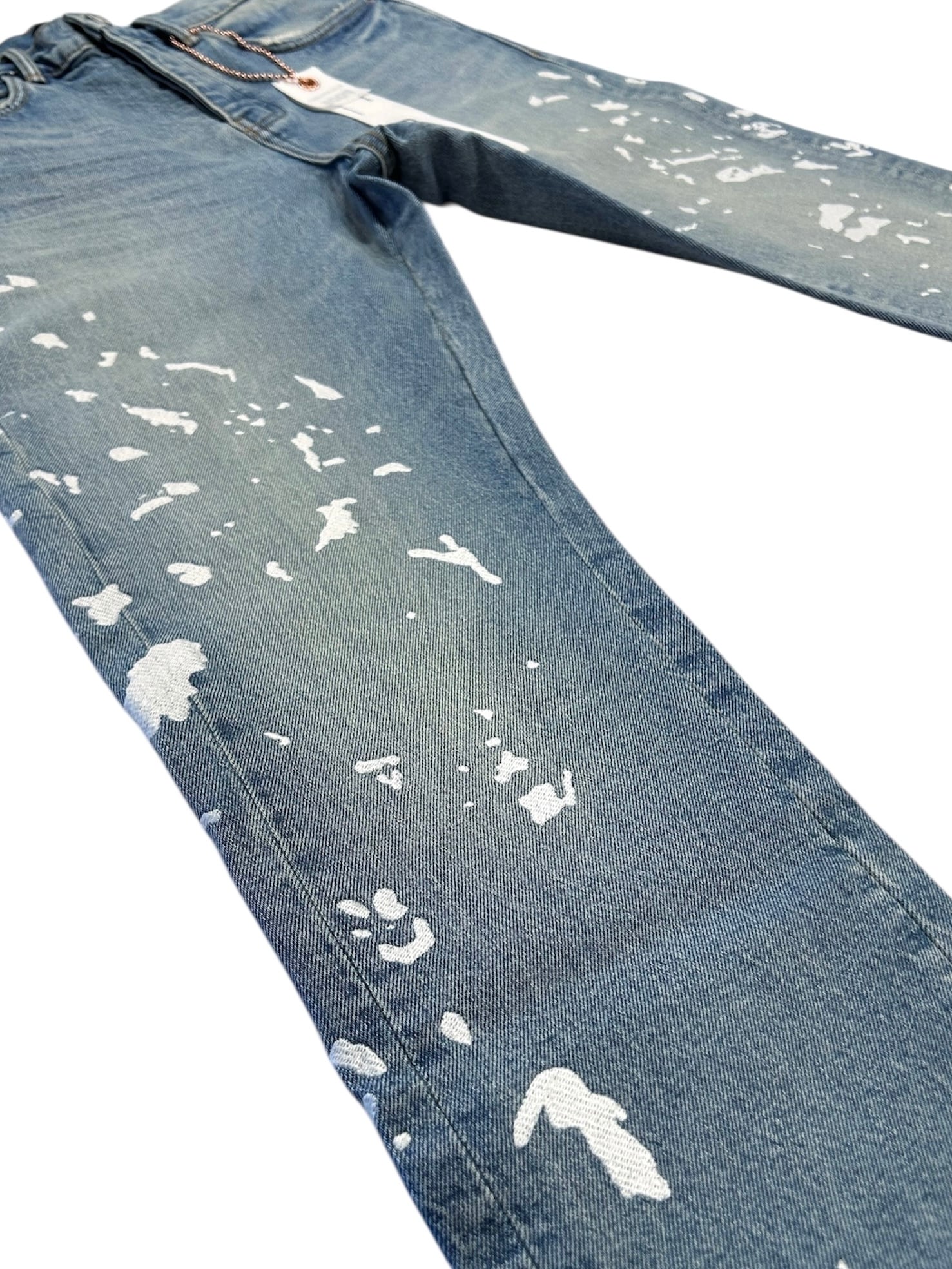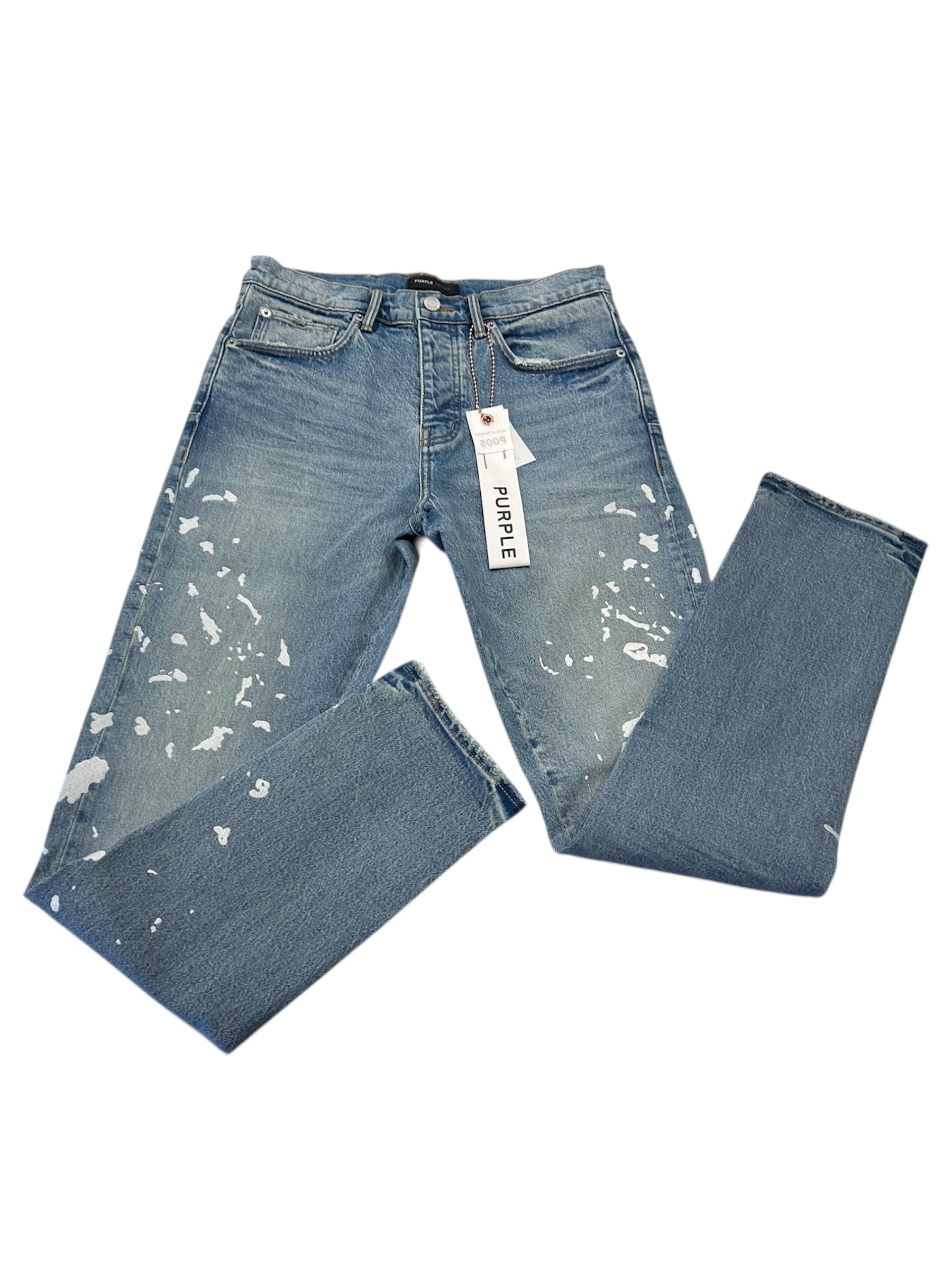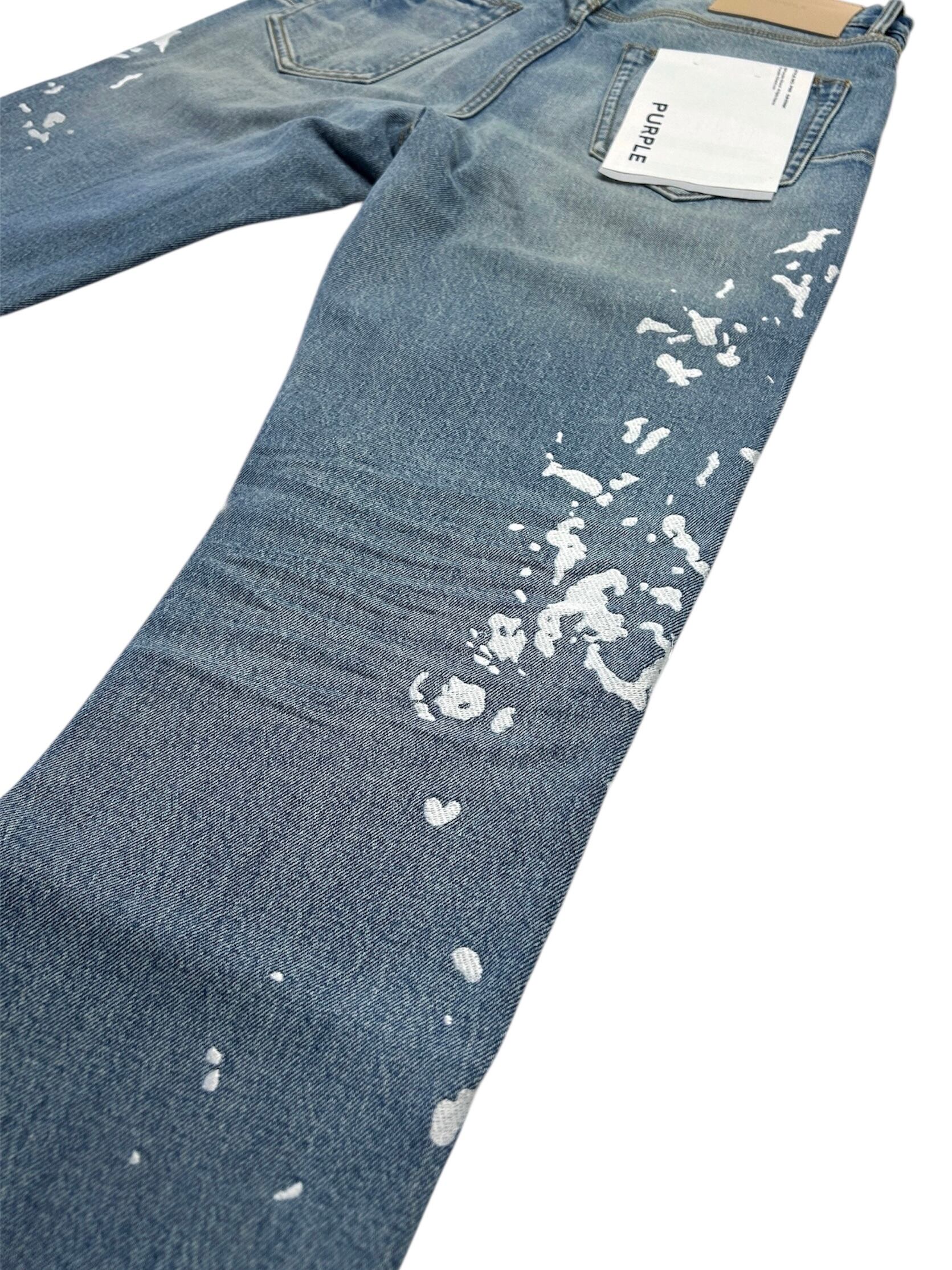 P005は、プレミアムストレッチデニムを使用したミッドライズのメンズジーンズです。クラシックな5ポケット構造。太ももから足首までストレートなシルエットで、ミディアムインディゴウォッシュにペイントスプラッター刺繍が施されています。カスタムメイドのパープルカウハイドレザーパッチ、バックポケットのフラッシャー、そしてロゴ入りハングタグが、ブランドらしさを演出します。