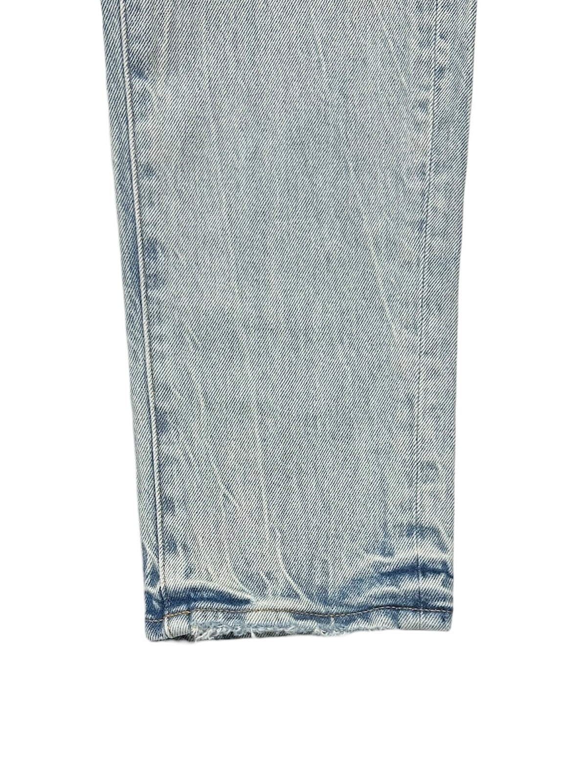 全面にヴィンテージのウォッシュ加工と3Dシワ加工、細かなダメージ加工、後ろポケットにブランドの織りタグ。