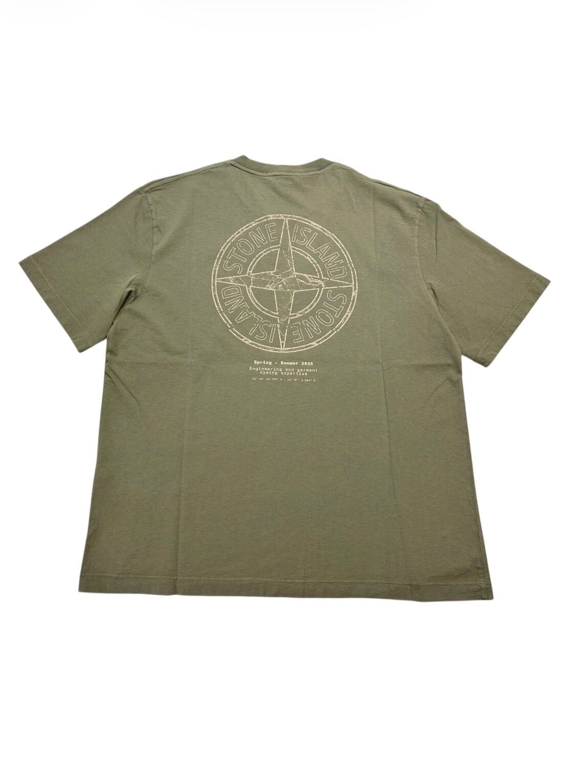 オーガニックコットンジャージーを使用したショートスリーブのTシャツ。胸元にロゴとテキストのプリント、背面にヴィンテージ風の大きなCompassモチーフ