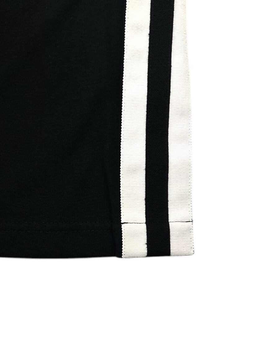 左袖にはサークルワッペンを配置、サイドにはグログランテープを重ねたラインを形成し単なるTシャツに収まらないデザイン。